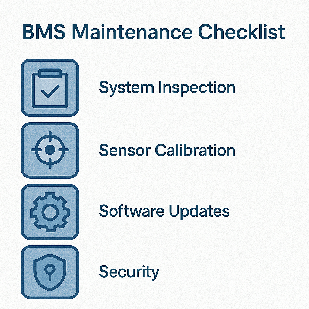 BMS는 복잡한 하드웨어와 소프트웨어로 구성되어 있어 정기적인 점검이 필요합니다. 주요 점검 항목은 다음과 같습니다: